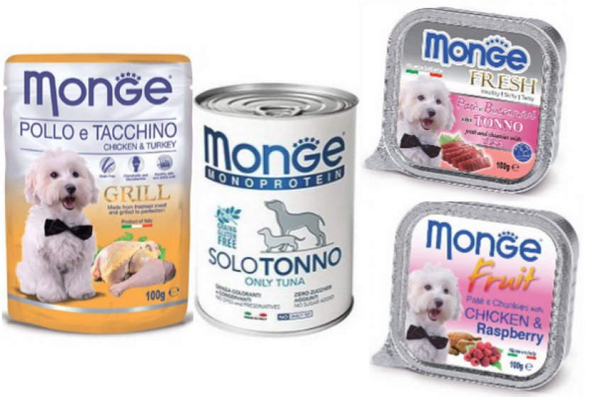 Состав сухих и влажных кормов Монже