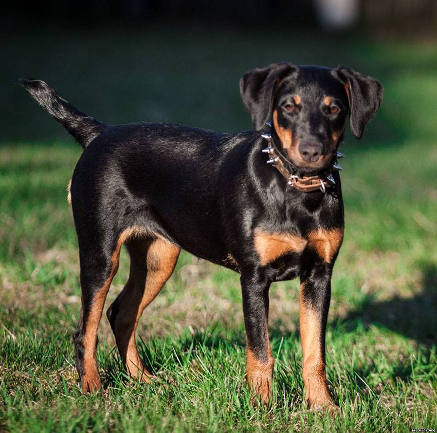 Окрас обязательно с рыжим подпалом, черный или коричневый. Допускается лишь небольшое бело пятно на груди.