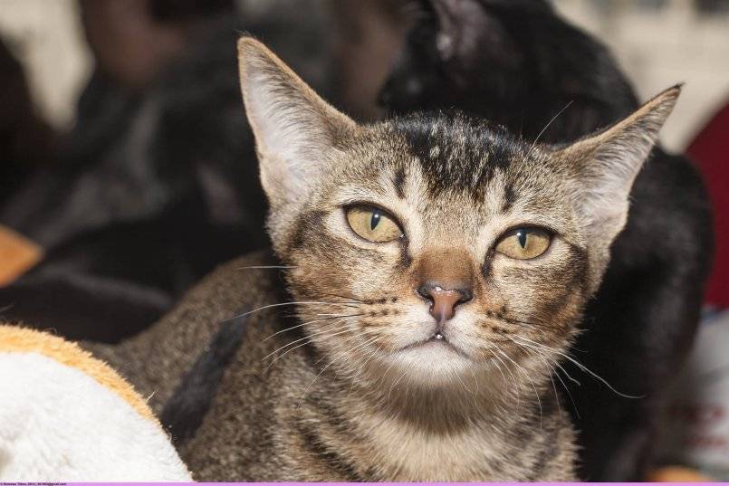 Азиатская кошка табби, будет терпеливо дожидаться, когда ей смогут уделить внимание