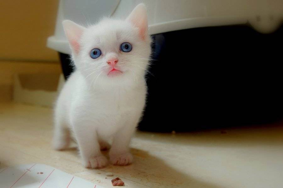 Шерсть у этих кошек на ощупь мягкая, подшерсток развит не очень хорошо. Особенностью голубоглазых пушистиков можно считать приятный блеск их волосяного покрова.