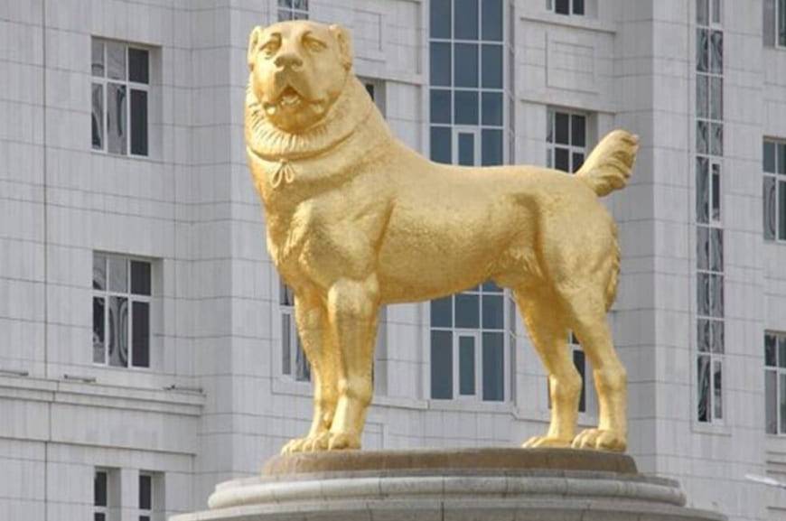 В туркменской столице городе Ашхабад установлен отлитый из золота памятник алабаю. Высота монумента с постаментом около пятнадцати метров. Вокруг памятника — круговой экран, где непрерывно транслируются видеоматериалы о жизни алабаев. Памятник алабаю в Ашхабаде установлен по инициативе президента Туркменистана, большого любителя и владельца туркменского алабая.