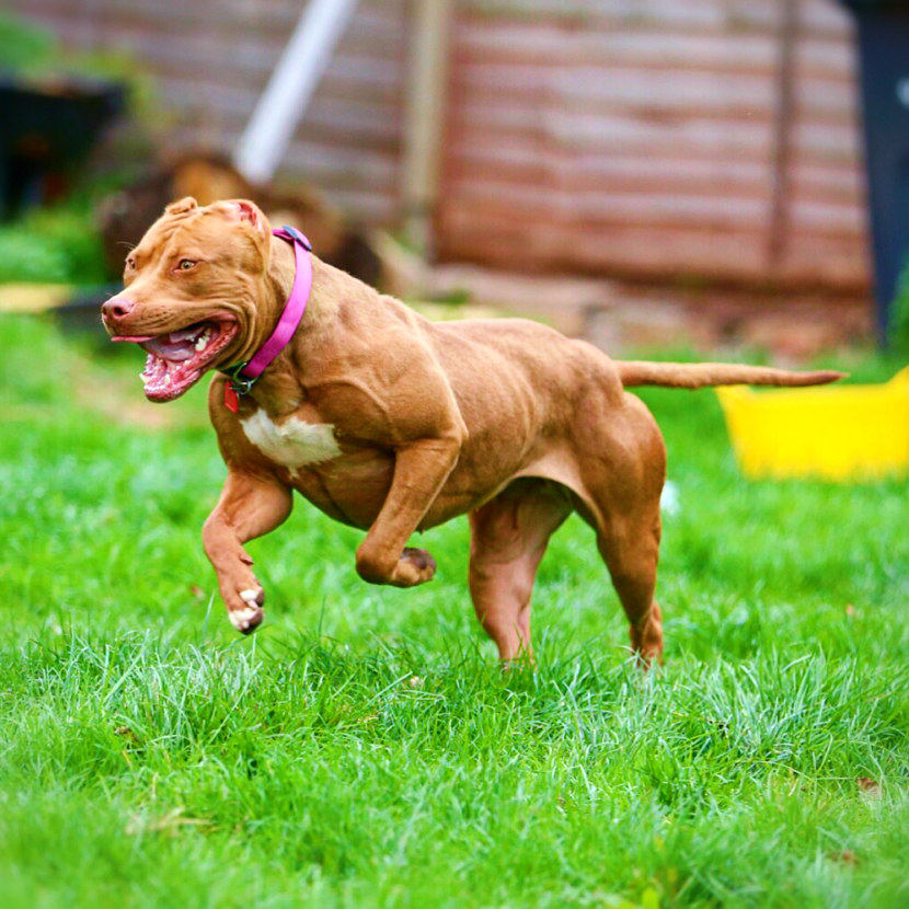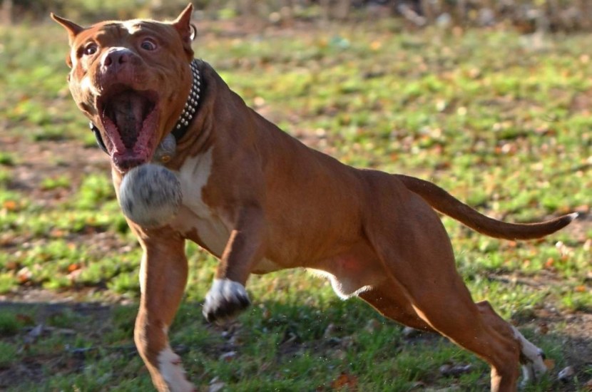 Мощный толчок задних лап позволяет питбулю взять быстрый старт