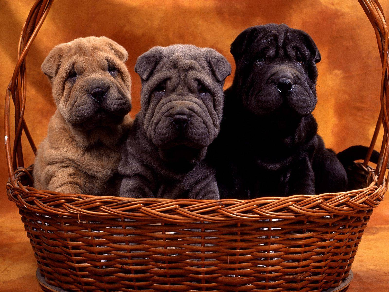 Щенки шарпеев чрезвычайно забавны, главная их особенность – обилие складок кожи не только на голове и туловище, но и на конечностях. Один знакомый заводчик сказал, что восьминедельный щенок шарпея напоминает «внука, разгуливающего в дедушкиной пижаме», а «сердитые» складки кожи на лицевой части головы придают щенку вид ребенка, играющего в войну, а не выражение свирепой боевой собаки. Уши у щенка шарпея должны быть маленькими, плотно прилегать к голове и едва закрывать слуховой проход. Веки не должны закрывать глаза и иметь следов оперативного вмешательства. Щенок растет быстро и к восьми месяцам достигает высоты в холке взрослой собаки.