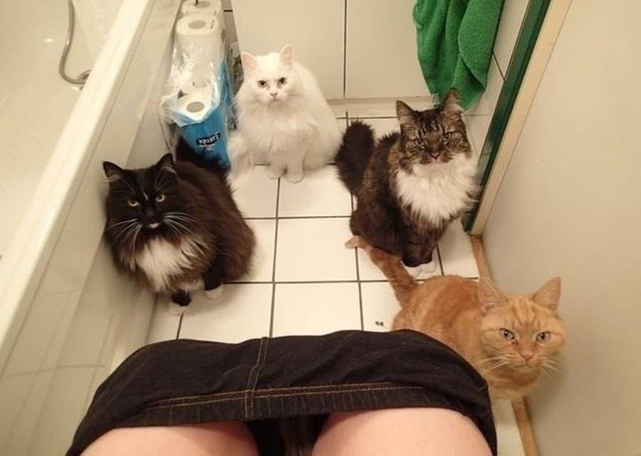 Ваш туалет находится в той же самой комнате, где человек иногда сидит на маленьком стульчике и читает различные газеты и журналы? Отлично! Через некоторое время после того, как человек там расположится, начинайте царапать дверь когтями и просовывать под неё лапу, показывая, что вам тоже туда надо.