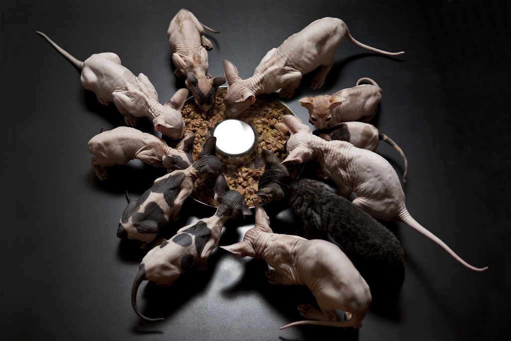 Эта статья расскажет об основах правильного питания взрослых сфинксов и их потомства.