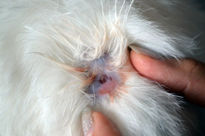 Если свищ обнаружен на спине кошки, то это скорее всего показатель опухоли и при этом необходима биопсия.