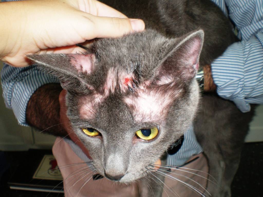 Третья форма заболевания – атипичная. При этой форме стригущего лишая на теле кошки образуются отдельные участки без шерсти. Затрудняет распознавание заболевания то, что стригущий лишай этой формы можно спутать с обычными ссадинами или потертостями.