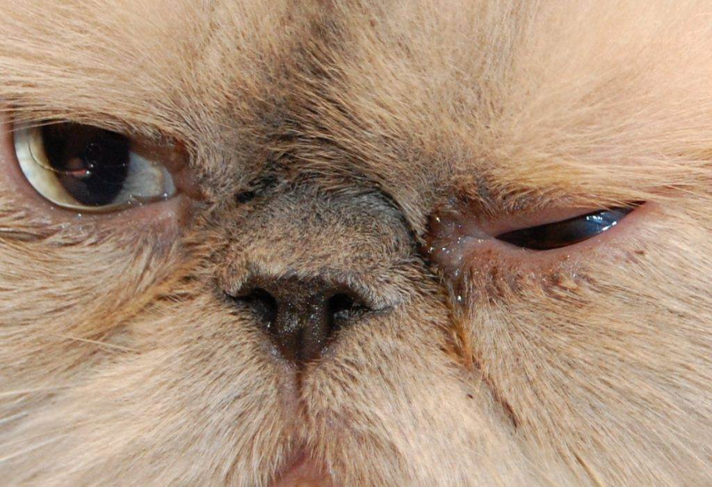 - Деформации носослезного канала. Это может случиться из-за травмы или быть врожденной особенностью. В последнем случае речь идет о персах, британцах, экзотах и рексах, у которых от природы деформирован слезный канал, что обусловлено сплюснутой формой носа.