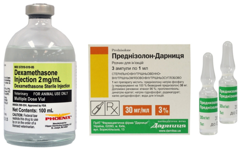 Для лечения заболеваний, в этиологии которых лежат дегенеративные процессы, в ветеринарной практике применяются, как правило, кортикостероидные противовоспалительные средства. Собакам при артритах, остеохондрозе, спондилезе, дископатии назначают Дексаметазон, Преднизолон. Препараты применяются строго под контролем лечащего врача.