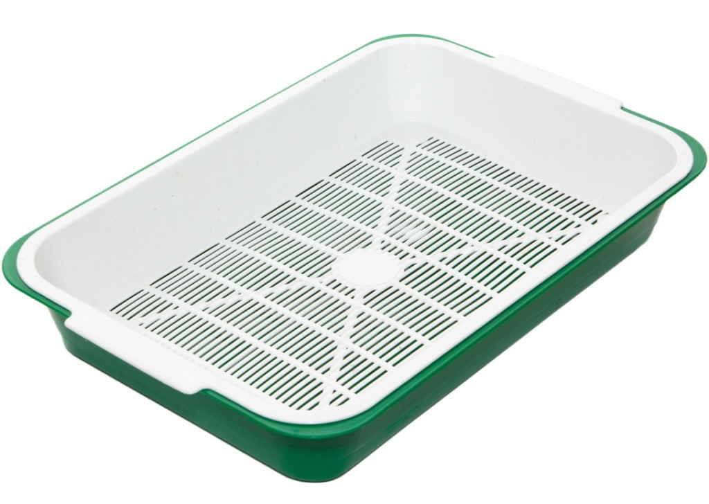 Представляет собой емкость, снабженную пластиковой сеткой, через которую легко стекает моча, а каловые массы остаются снаружи. В лоток с сеткой можно добавлять наполнитель.