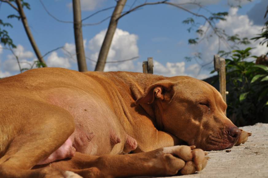 У собаки с ложной щенностью начинает расти живот, просыпается аппетит, нагрубают молочные железы. Внешне отличить мнимую беременность у сук от настоящей практически невозможно.