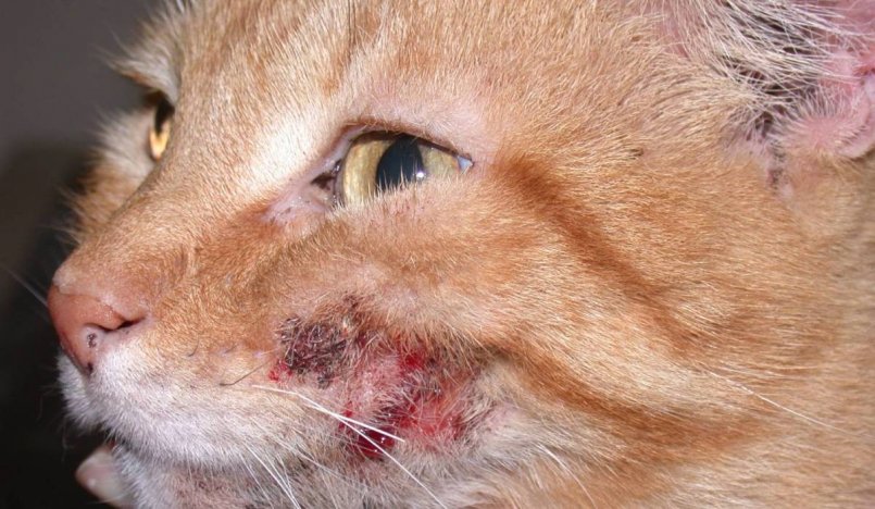 На фото подкожных клещей у кошки можно наглядно ознакомиться с признаками данного заболевания. В случае обнаружения подобных симптомов у питомца, следует немедленно принимать меры.