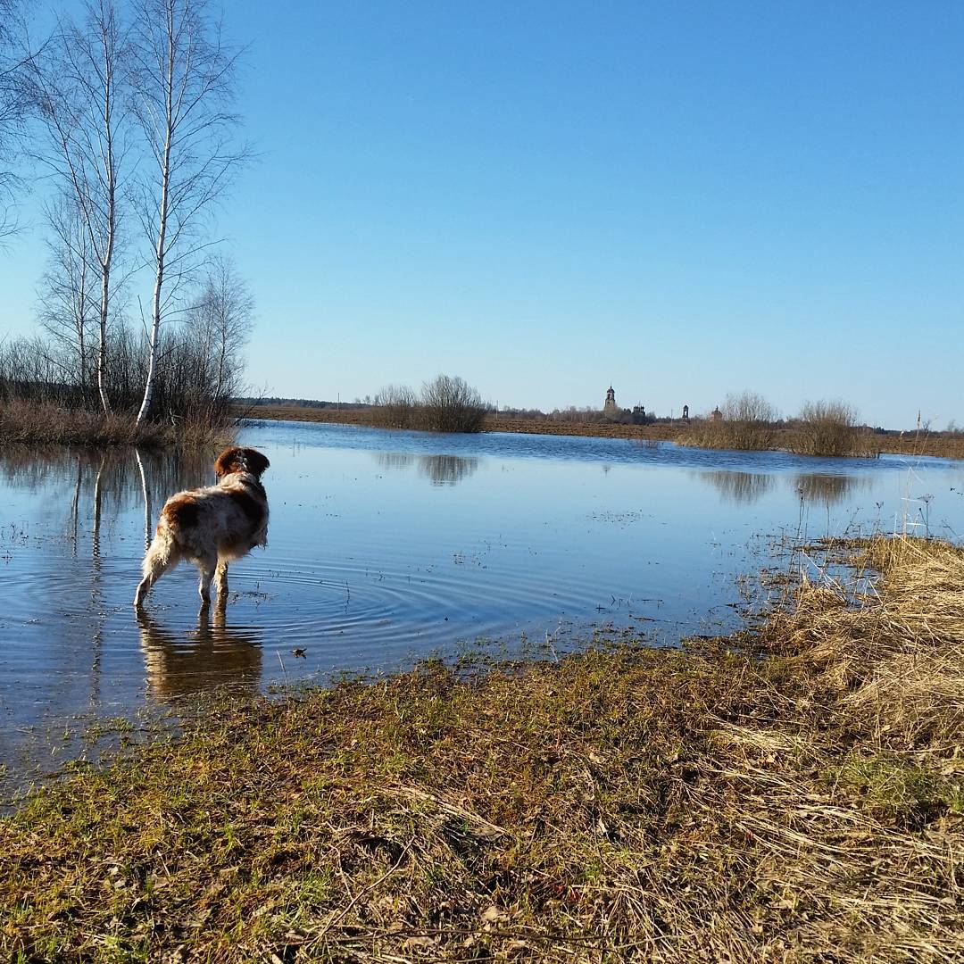 Бретонский эпаньоль любит воду и хорошо плавает.