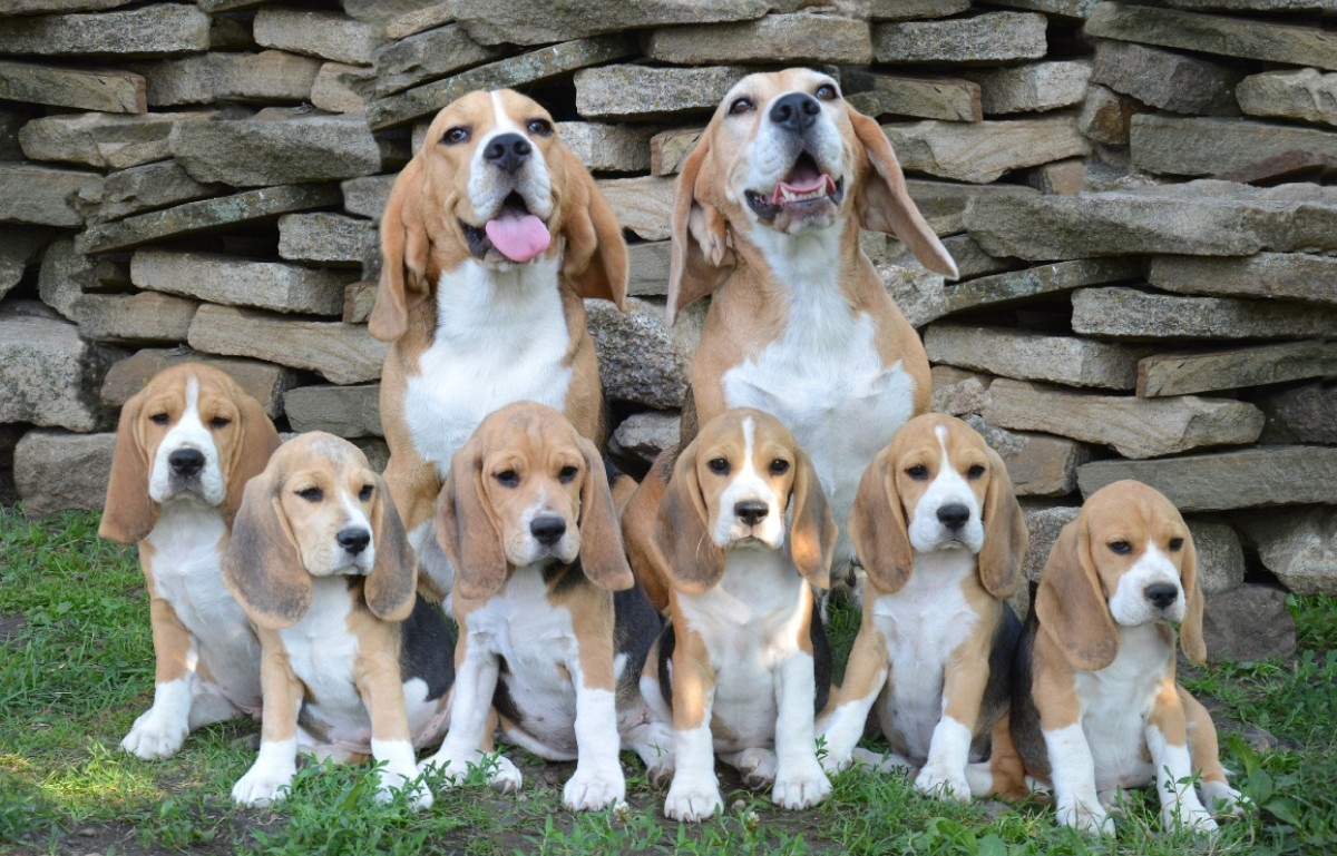 Щенки бигля с родителями