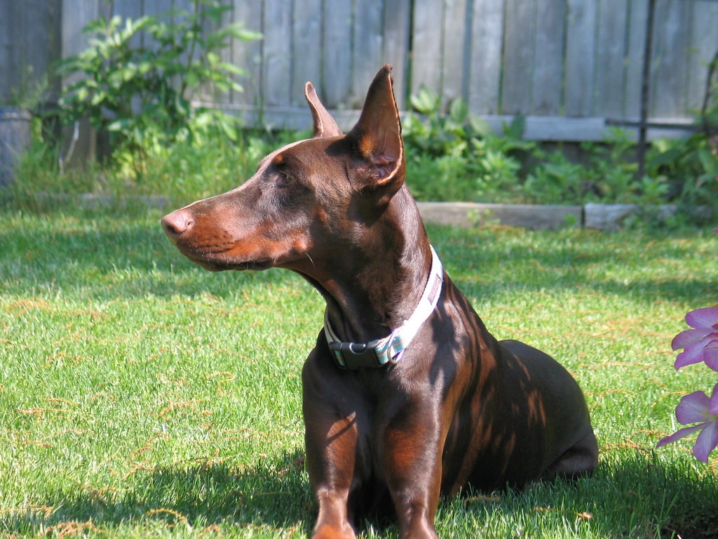 Основной окрас породы черный или коричневый, при этом на некоторых участках тела присутствуют четко разграниченные ржаво-красные подпалины. В наши дни доберманов можно встретить на службе в полиции или в армии, поскольку у них прекрасный нюх. Как правило, доберманы живут не больше 15 лет.