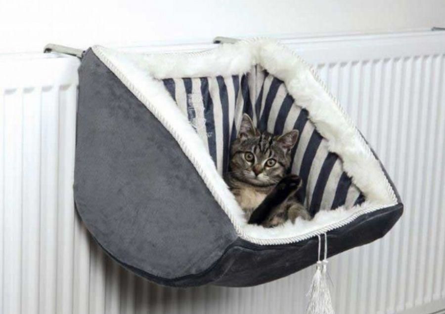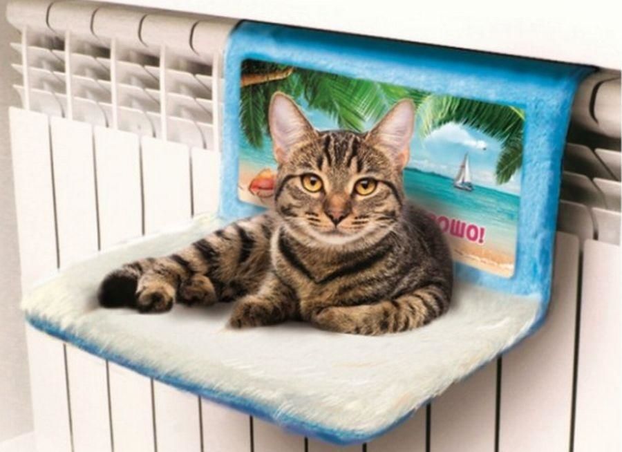 Кошкам свойственно спать на теплых батареях, особенно с приходом зимы. Почему бы не воспользоваться этой привычкой питомцев, и не соорудить дня них необычную навесную лежанку? Это будет простая конструкция, состоящая из жесткого основания и мягкого матраца, который крепится к радиатору отопления.