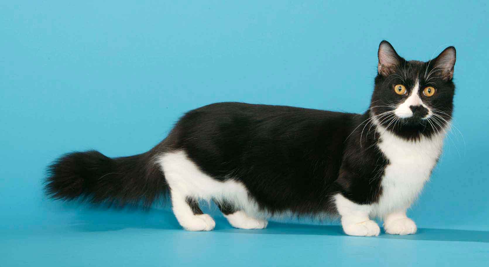 Эти карликовые кошки появились вследствие естественной генетической мутации, а не в результате селекционных работ. Манчкины имеют растянутый корпус и короткие ноги, придающие им сходство с таксой.