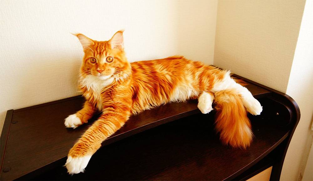 Пушистые кошки породы «мейн-кун» считаются самыми большими из всех пород домашних кошек. Взросление длится на протяжении четырех лет, хотя кошки других пород достигают зрелости к двум годам. История происхождения породы окутана тайной. За внешнее сходство с рысью и енотом кошку прозвали мейнской енотовой кошкой. Мейн-кун может быть окрашен в разнообразные цвета. Очень красиво смотрятся рыжие кошки: кажется, что их коснулось само солнце.