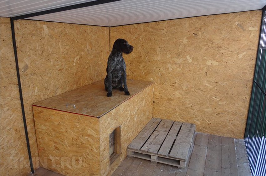 - капитальный. Состоит из двух зон: решетчатая часть для выгула и кормления, а также закрытая зона отдыха. Применяется для круглогодичного содержания. Строение обязательно утепляют со всех сторон для комфортного проживания пса в зимний период.