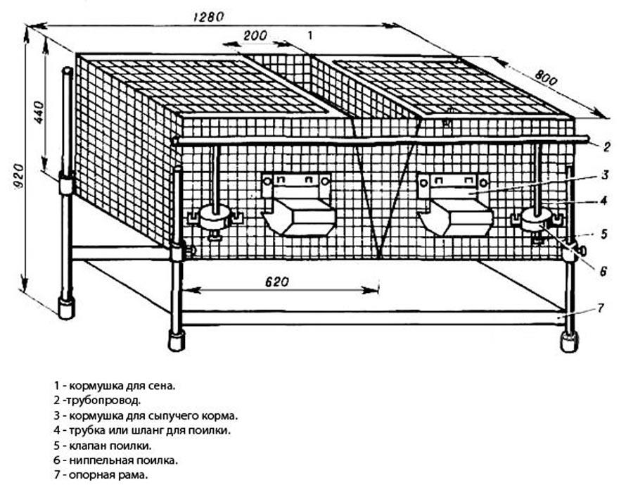 Построение двухсекционного крольчатника проходит по следующим этапам: