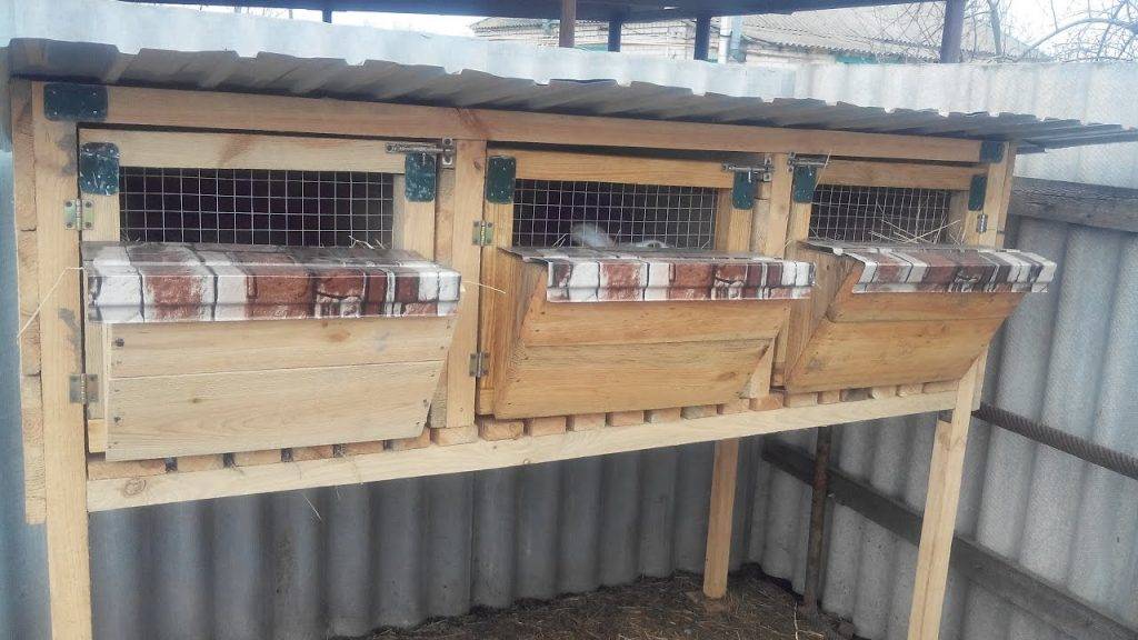 Удобство обустройства крольчатников в уличных условиях заключается в наличие большего пространства и простоте ухода за своим «зверинцем», так как каждая из клеток нуждаются в периодической очистке.