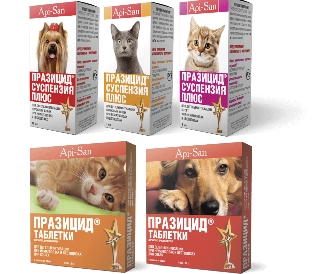 — Празицид-суспензию Плюс для взрослых кошек, котят и щенков мелких пород – 1 мл на 1 кг массы животного.