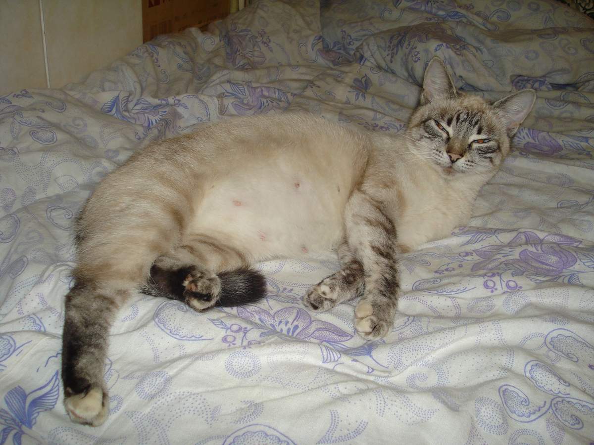 Беременность у кошек обычно протекает нормально, но бывает и патологическая беременность. В норме беременность кошки приводит к некоторым изменениям в поведении животного. Кошка кушает понемногу, но часто, аккуратнее совершает прыжки, не дает прощупать живот и напрягает мышцы при подобных попытках.