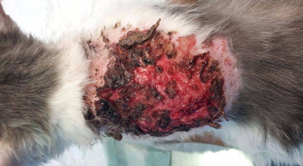 За это время на коже образуются гнойники или же эпидермис огрубевает и покрывается чешуйками с ороговевшим слоем. Острая стадия болезненна и опасна для кошек, так как к ней быстро присоединяются вторичные инфекции. Если ее вовремя не купировать, она становится хронической или подострой.