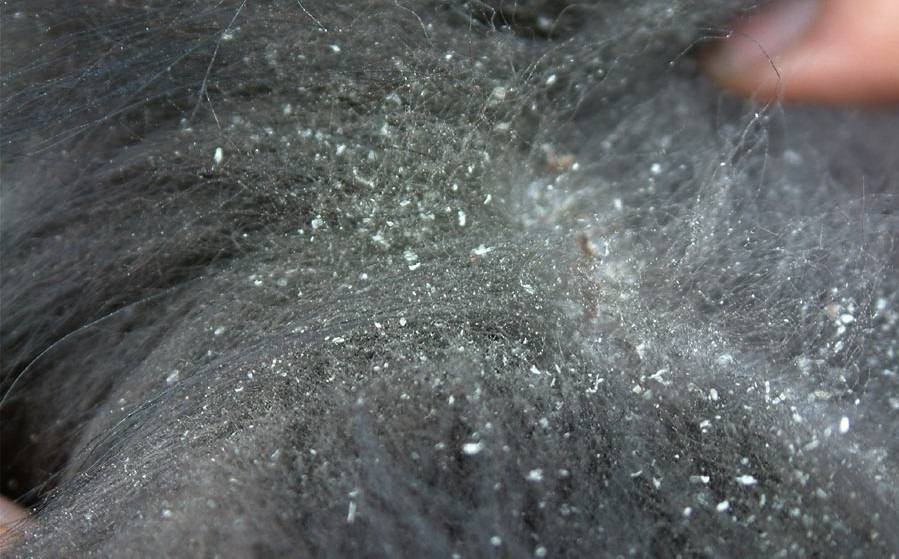 Черные крупинки в шерсти вместе с перхотью говорят о наличии грибкового заболевания или присутствии паразитов. Чаще всего перхоть, которая возникла на фоне грибкового заболевания, располагается в зоне хвоста и поясницы.