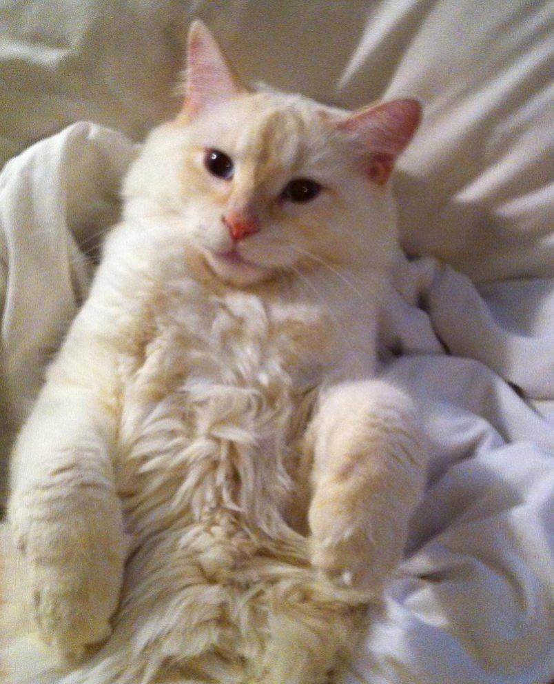 Речь пока ещё не идёт об ожирении, но «окорочка» вашего кота уже стали плотненькими, рёбра трудно прощупать под слоем подкожного сальца, а загривок по ширине почти сравнялся с попой.