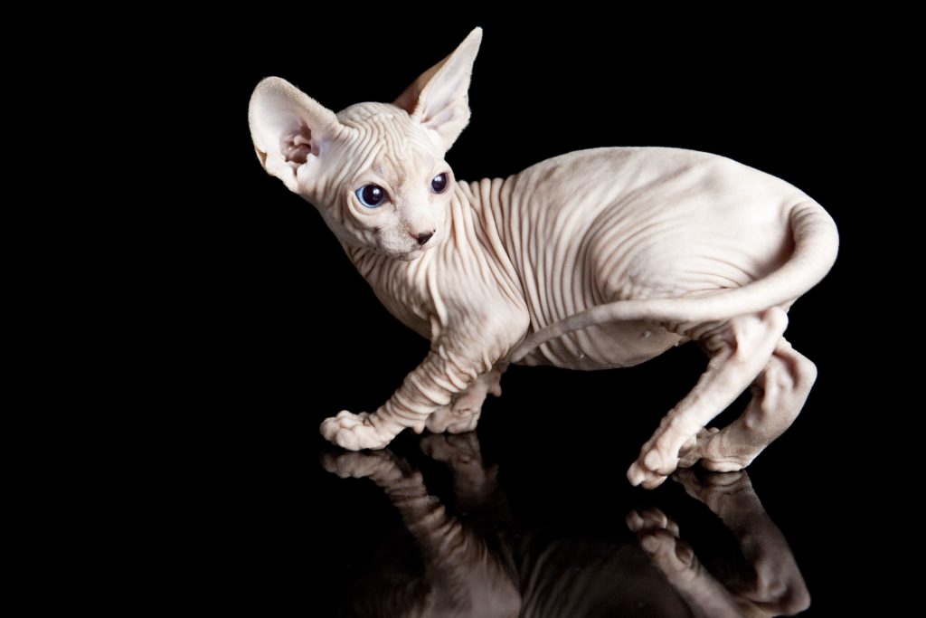 Бесшерстные питомцы, среди которых наиболее известны Канадская, Донская и Петербургская разновидности, отличаются сообразительностью, общительным нравом, привязчивостью к хозяину. Кожа Сфинксов либо совсем лишена шерсти, либо покрыта легчайшим пухом. Диапазон цен – 10-70 тыс. рублей.
