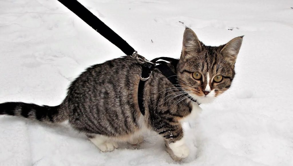 Если кот беспокоится в амуниции, делает попытки ее снять, то необходимо отвлечь его внимание, переключив интерес на новую игрушку или лакомство. При яростном сопротивлении следует снять шлейку и повторить попытку через несколько дней