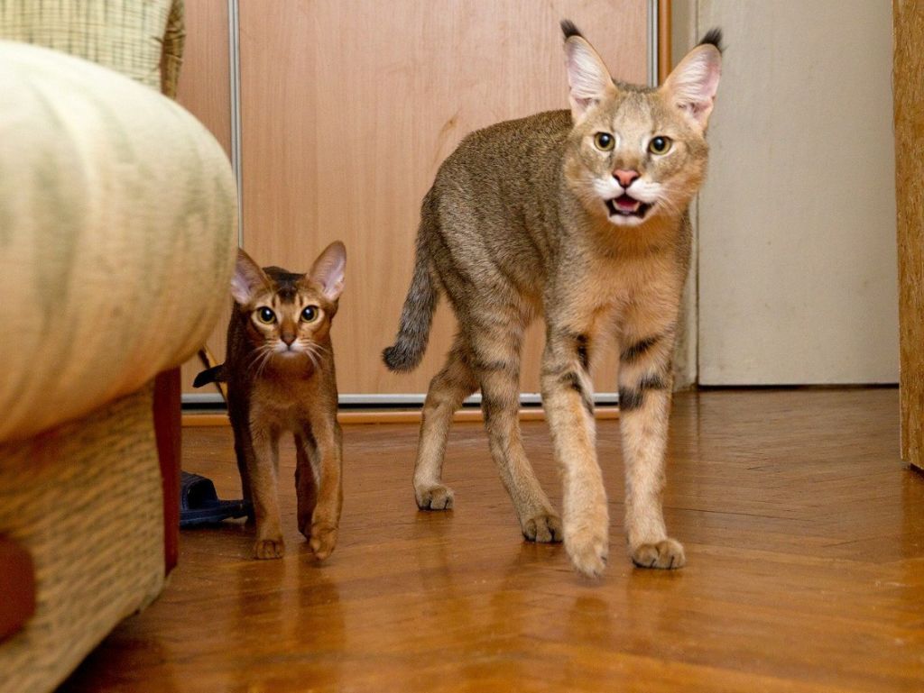 Кошка и котенок породы Чаузи