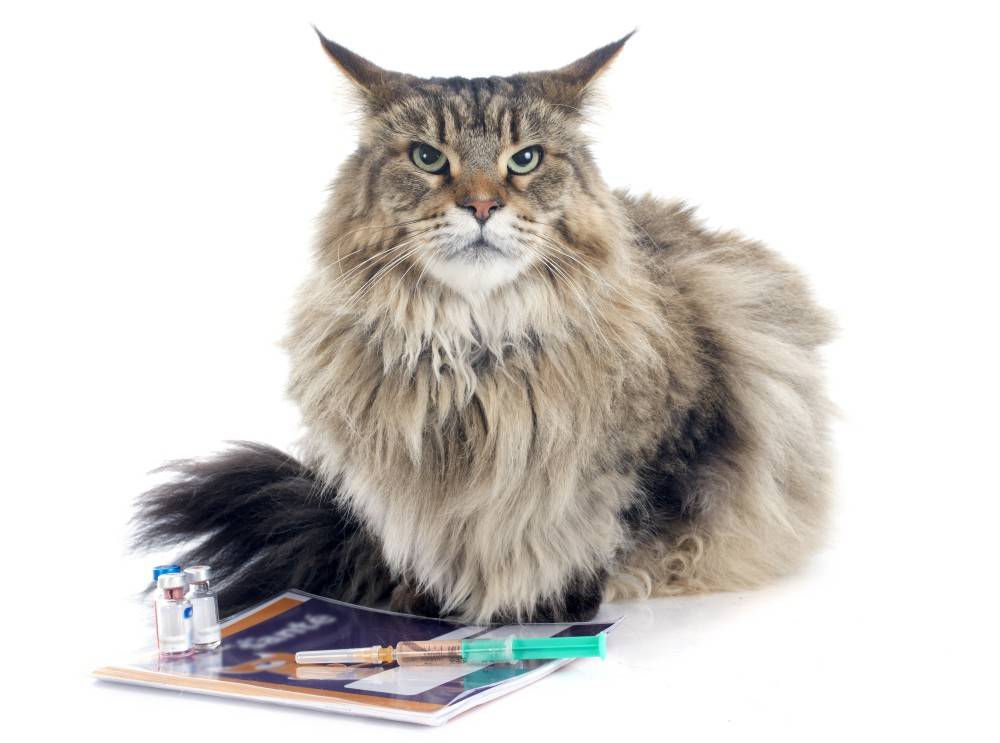 В первый раз прививка мейн-кунам делается в два месяца, следующая — в три месяца, третья — когда животному исполнится год, а далее вакцинация производится ежегодно или раз в два года (по европейской системе).
