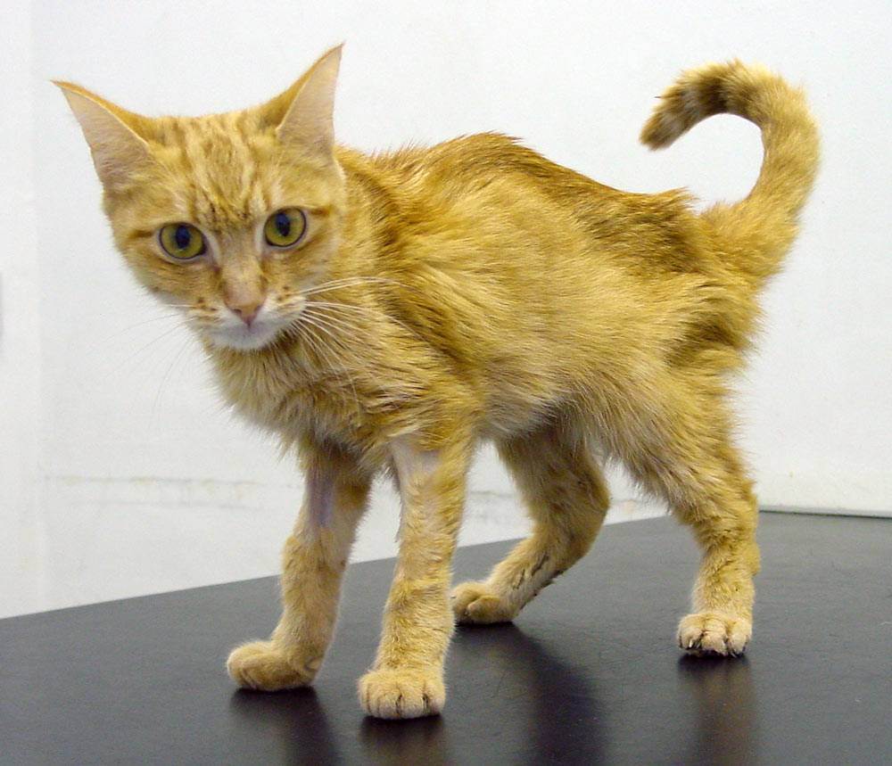 Когда болезнь переходит в тяжелую форму, симптомы проявляются более ярко. Кошка быстро утомляется, много спит, отказывается от игр, резко теряет вес. О патологии наглядно говорит внешний вид питомца – атрофированные мышцы, свисающая складками кожа, полная апатия.