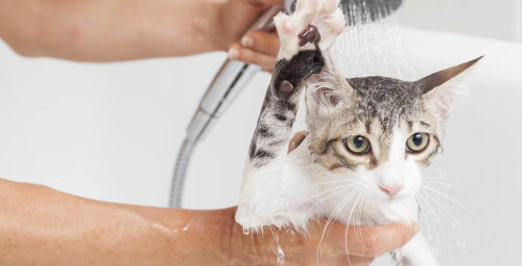 Перед тем как начать мытьё, следует из ванной комнаты убрать те предметы, которые может зацепить испуганная кошка