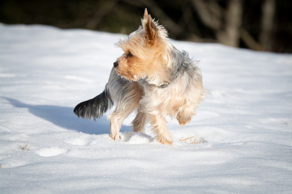 Уход за лапами. Уход за лапами йоркширского терьера включает в себя их мытье и чистку после прогулок, стрижку шерсти между когтями и удаление посторонних предметов или мусора. Следует также уделять внимание внутренней поверхности (подушкам) и обрабатывать ее специальным средством «ваксой» в зимний период времени, когда асфальт посыпает реагентами.