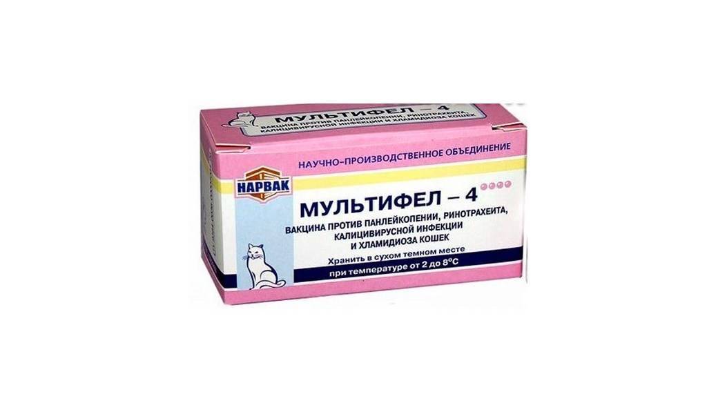 - Мультифел-4 против панлейкопении, ринотрахеита, кальцивирусной инфекции и хламидиоза кошек.