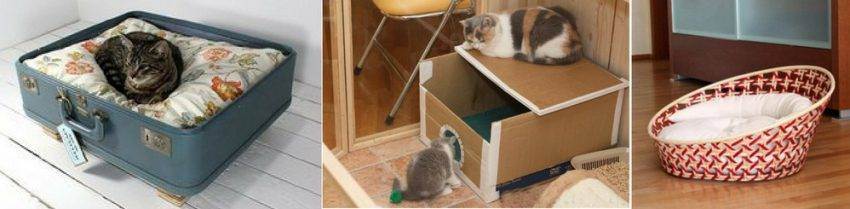 Дно коробки следует застелить матрасом, сверху положить непромокаемую клеенку, затем одноразовую детскую пеленку. Домик следует разместить в спокойном, укромном и затемненном месте. Нежелательно ставить коробку рядом с источниками тепла, на сквозняках, в проходном помещении, вблизи других животных.