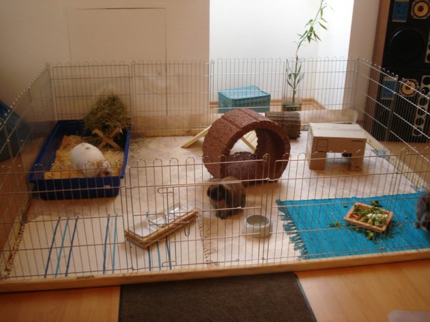 Вопрос совместного проживания человека и кролика решается очень просто за счёт оборудования специальной клетки для питомца