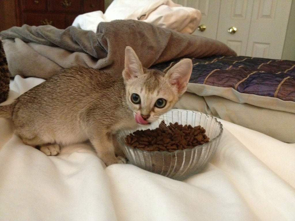 К еде сингапурская киска совершенно не привередлива, она предпочитает любую пищу, которую ей предложит хозяин. Однако это не означает, что ее можно кормить, чем попало, давать остатки со стола. Меню должно быть рациональным, сбалансированным: