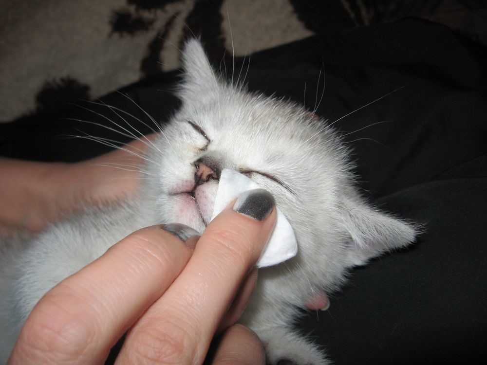 Регулярно очищать кошке глаза. Для этого нужно использовать чистую марлю, смоченную в специальном растворе. Нельзя применять один и тот же тампон для очищения обоих глаз.