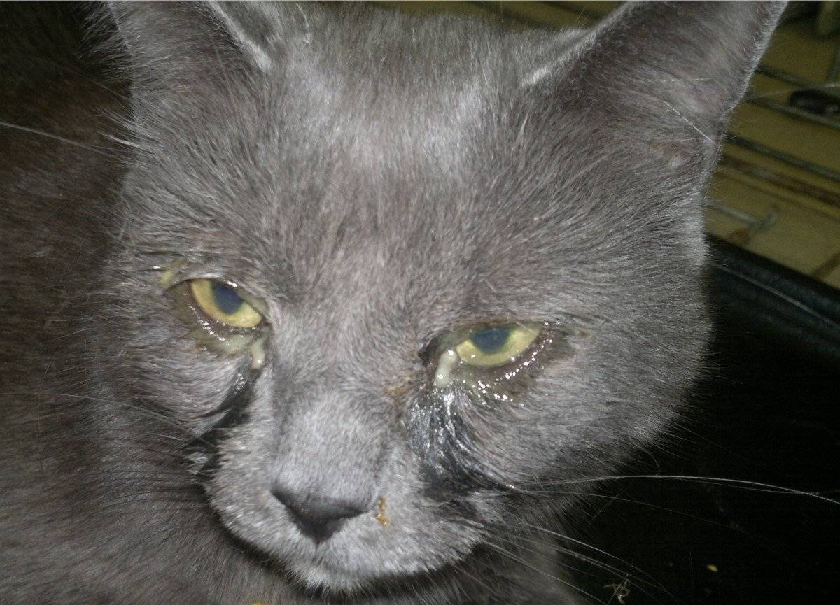 В первые несколько дней заболевания у кошки отмечается незначительное повышение температуры. Как правило, это не влияет на ее аппетит и общее самочувствие. Острая форма конъюнктивита при хламидиозе начинается с выделений из глаз, которые затем вследствие вторичной инфекции становятся гнойными. При этом конъюнктива приобретает кирпично-красный цвет, бывают видны отдельные сосуды, возможен отек конъюктивы.