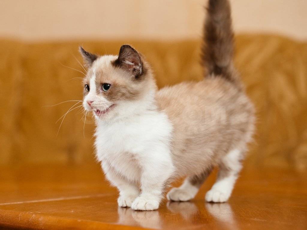 Манчкин – одна из любимых многими заводчиками пород. Это карликовые коты с коротенькими конечностями. Животные весят около 3,5 кг. Порода была получена в результате естественной мутации, которую заводчики закрепили при разведении кошек с выраженным признаком коротколапости.