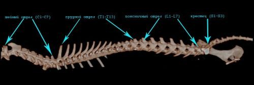 Область позвоночного столба у кошек образована множественным числом позвонков, простирающихся от области окончания костей черепа до хвоста. Между собой отдельные позвонки соединены специальными дисками, именуемыми межпозвоночными.