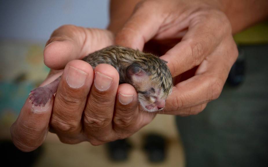 Только что появившиеся на свет малыши имеют массу около 70-130 г. В первые дни жизни детеныши практически не двигаются и ничего не видят. В это время их основная задача есть, спать и расти. В результате такого режима они за день должны набирать 10-15 г.