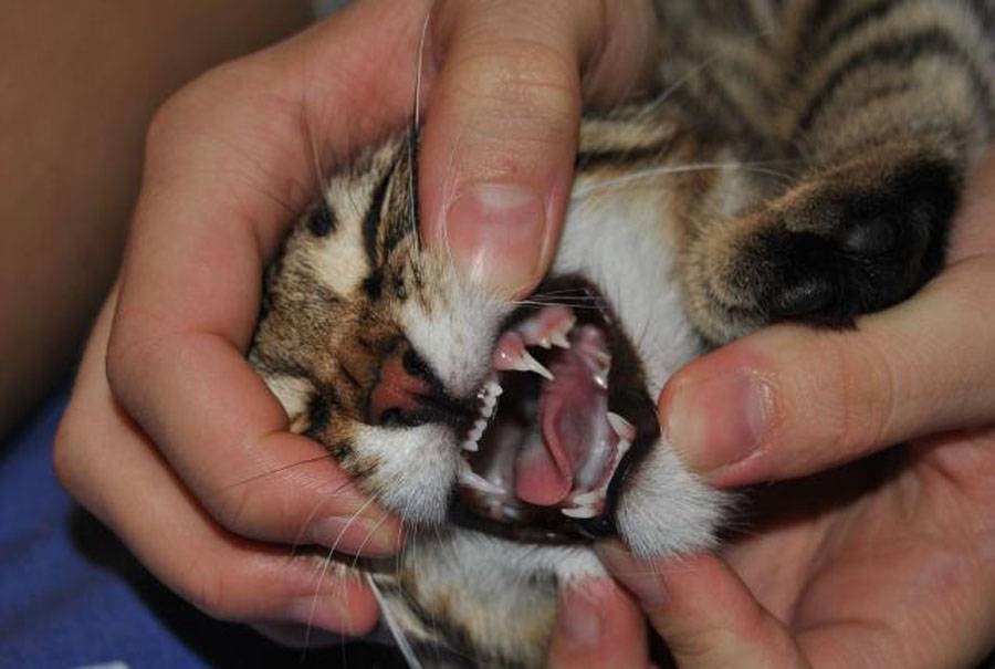 - Затем режутся клыки. Это происходит в возрасте 3–4 недель.
