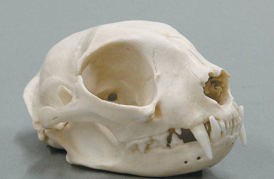 Хорошо видно, сколько зубов у кошек, и на фото черепа животного:
