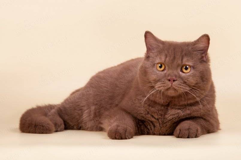Короткошерстного британца шоколадного окраса или вислоухую кошечку того же цвета придется подбирать с учетом особенностей породы.