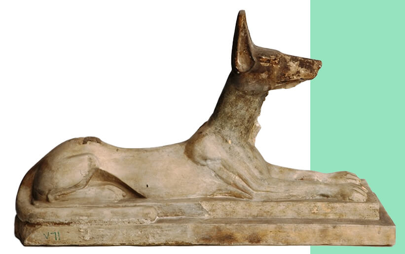 Статуэтка Анубиса из известняка. Из раскопок в Саккаре. Поздний период около 750 — 332 гг. До н. Э.